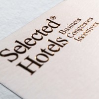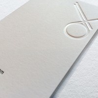 Letterpress printed cards using single colour grey and a clear foil logo.